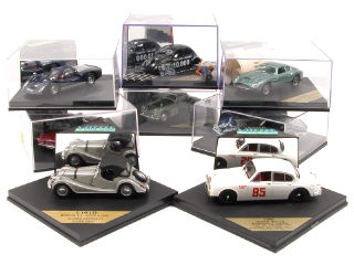 miniatures reproduisant les modèles : JAGUAR, MORGAN, TRIUMPH, PORSCHE, FIAT, VOLKSWAGEN, CHEVROLET & ASTON MARTIN