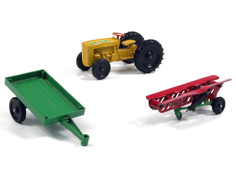 LONE STAR (GB) Ensemble d'un tracteur agricole, une remorque à 2 roues & un élévateur jaune, vert & rouge