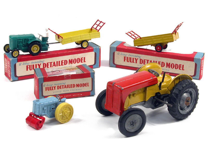longueur de l'ensemble 17,5 cm - moteur à clef (fonctionne) - manque volant - avec clef - on y joint une remorque à foin & une boîte vide de la même référence