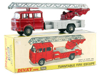 DINKY TOYS (GB) 956 BERLIET GLK Grande échelle de pompiers rouge, plate-forme argent