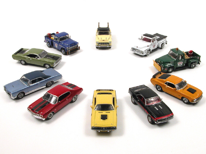 miniatures reproduisant les modèles : CHEVROLET, FORD, PLYMOUTH & PONTIAC - manque un rétroviseur sur un modèle