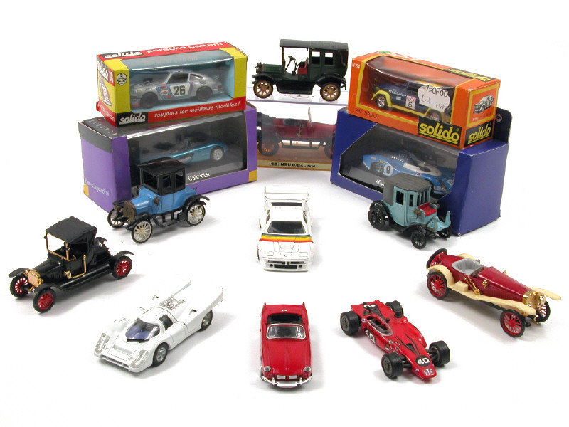 états de 'B' à 'D' - miniatures reproduisant les modèles : RENAULT, MATRA, ALFONSO, BMW, PORSCHE, FIAT, OPEL, TRIUMPH, FORD, NSU, PEUGEOT & BENZ - 5 modèles en boîte - petits manques