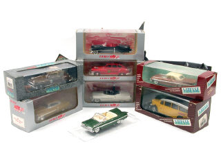 miniatures reproduisant les modèles : CADILLAC, CHEVROLET, CHRYSLER, DE SOTO & SAURER- on y joint 2 dioramas en carton de la marque