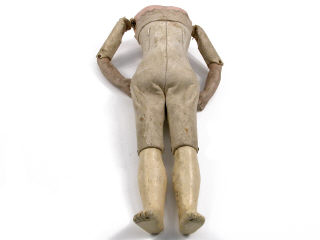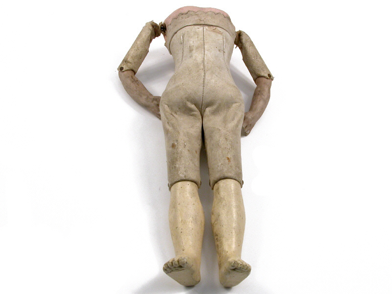 hauteur 36 cm - taille 8 - fabriqué vers 1880 - buste en biscuit marqué en creux 'Bru Jne' - corps en peau, bras en biscuit (manque huit doigts) - jambes & pieds en bois