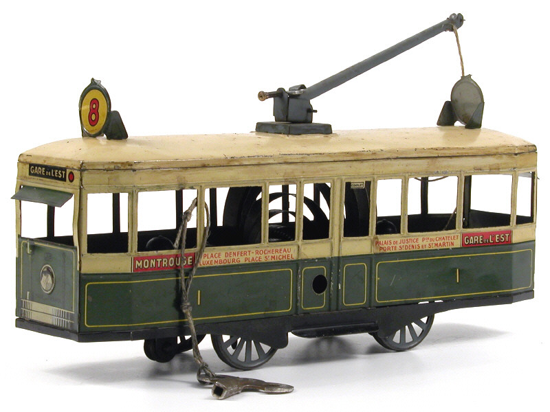 JEP (FRANCE) Tramway parisien mécanique en tôle lithographiée vert & crème