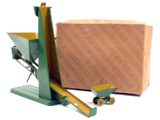 dimensions de la boîte : 36 x 27 cm - manque trémie & pelle à sable - petites traces d'oxydation