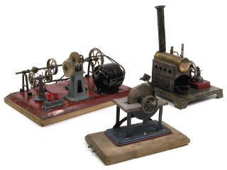 dimensions du socle : 33 x 22 cm - avec moteur électrique (non testé) - traces d'oxydation - manque une courroie d'entraînement d'une des machines