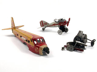 longueur 19,5 cm - moteur à ressort (fonctionne) - manque aile - traces d'oxydation sur la clef du moteur
