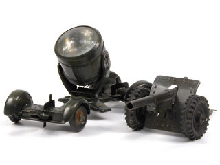 HAUSSER-ELASTOLIN (ALLEMAGNE) Canon en tôle peinte vert armée