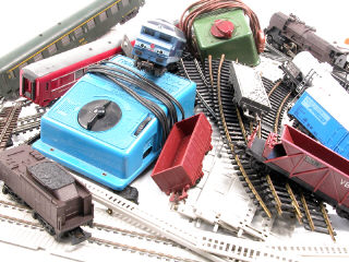 états de 'C' à 'F' - comprend : une motrice, une locomotive vapeur type 231 avec tender, 6 wagons, 2 voitures de voyageurs, des rails & 2 transformateurs - on y retrouve les marques : JOUEF, JEP & LIMA