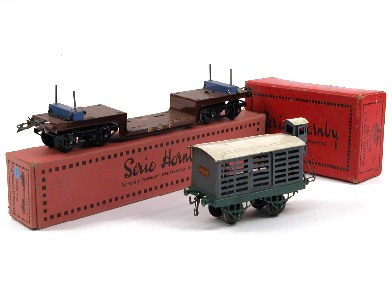 HORNBY 'O' (FRANCE) Wagon couvert transport de lait avec vigie gris, vert & crème