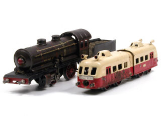 manque ampoule d'éclairage - attelages des 2 éléments non d'origine - moteur électrique modifié - importantes traces d'oxydation sur un côté des éléments