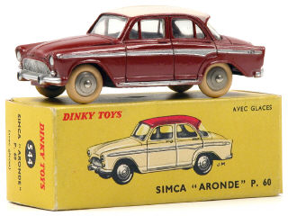 DINKY TOYS (FRANCE) 544 SIMCA ARONDE P60 (version avec jantes convexes) brique, toit crème