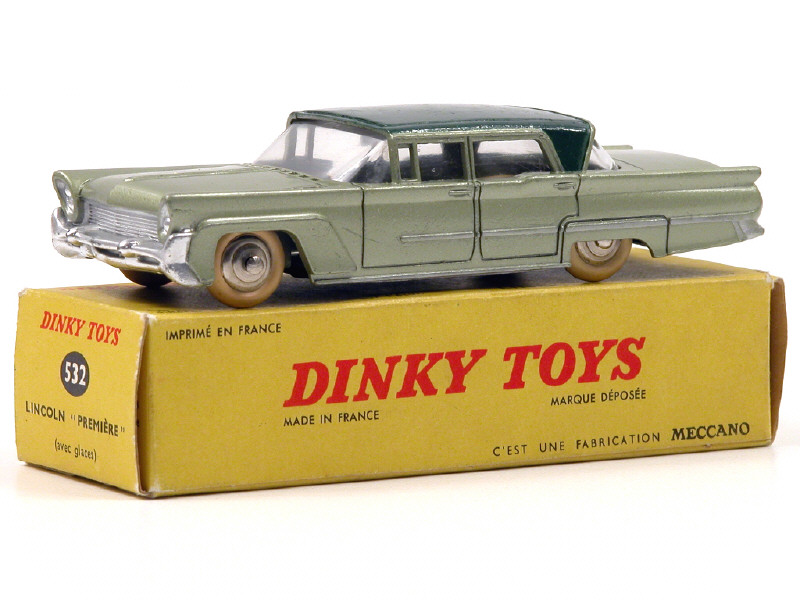 DINKY TOYS (FRANCE) 532 LINCOLN PREMIERE (version avec jantes convexes) vert métal, toit vert foncé