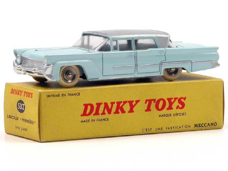 DINKY TOYS (FRANCE) 532 LINCOLN PREMIERE (version avec jantes concaves) bleu ciel, toit gris métal