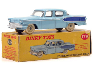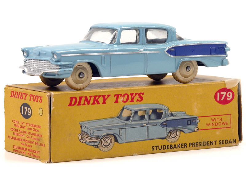 DINKY TOYS (GB) 179 STUDEBAKER PRESIDENT Sedan 2 tons de bleu, jantes beigess