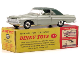 DINKY TOYS (GB) 137 PLYMOUTH FURY Convertible vert métal, capote verte