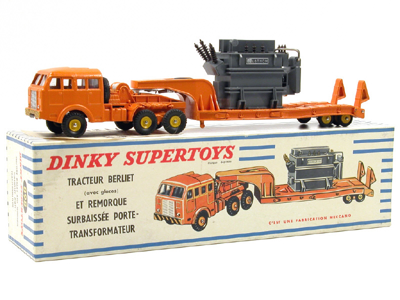 DINKY TOYS (FRANCE) 898 BERLIET Semi-remorque plateau porte-transformateur (version avec jantes de remorque convexes) orange