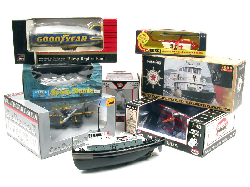 DIVERS Ensemble de 2 avions, d'un hélicoptère, d'un dirigeable, d'un bateau & d'une navette spatiale