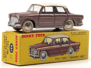 DINKY TOYS (FRANCE) 531 FIAT 1200 GRANDE VUE (version avec jantes convexes) havane métal, toit crème