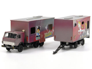 DIVERS (URSS) KAMAZ Fourgon-loge avec remorque-transport de chevaux de cirque framboise métal & gris