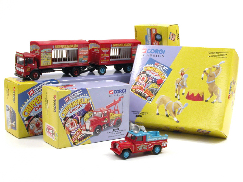 CORGI TOYS (GB) 07202 LAND ROVER Pick-up de parade 'CHIPPERFIELD'S CIRCUS' rouge & bleu