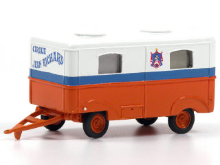 COMPTOURS (FRANCE) Caravane d'habitation 'CIRQUE JEAN RICHARD' blanc, bleu & orange