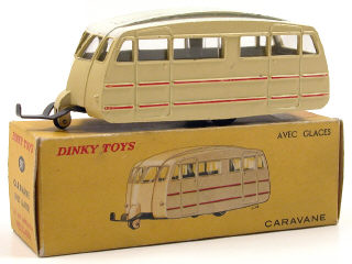 DINKY TOYS (FRANCE) 811 Caravane (version avec toit strié) crème, filets rouges, toit blanc