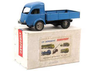 longueur 32 cm - moteur à clef (fonctionne) - avec direction - manque bâche - traces d'oxydation sur les axes & les enjoliveurs de roues - boîte non conforme