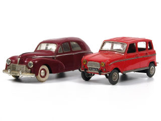 longueur 25 cm - moteur à pile (non testé) - phares électriques - déformation de la carrosserie avec petites fêlures - 2 fixations de pare-chocs recollées