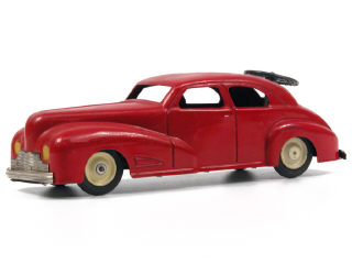 longueur 26 cm - direction commandée par une tige (manquante) & un volant (non d'origine) - l'ancêtre des voitures téléguidées !