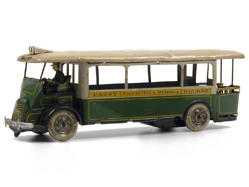 longueur 29 cm - fabrication de 1937 - moteur à clef (à revoir) - avec direction - traces d'oxydation - cartouche de toit & pare-chocs repeints - petites déformations sur le toit