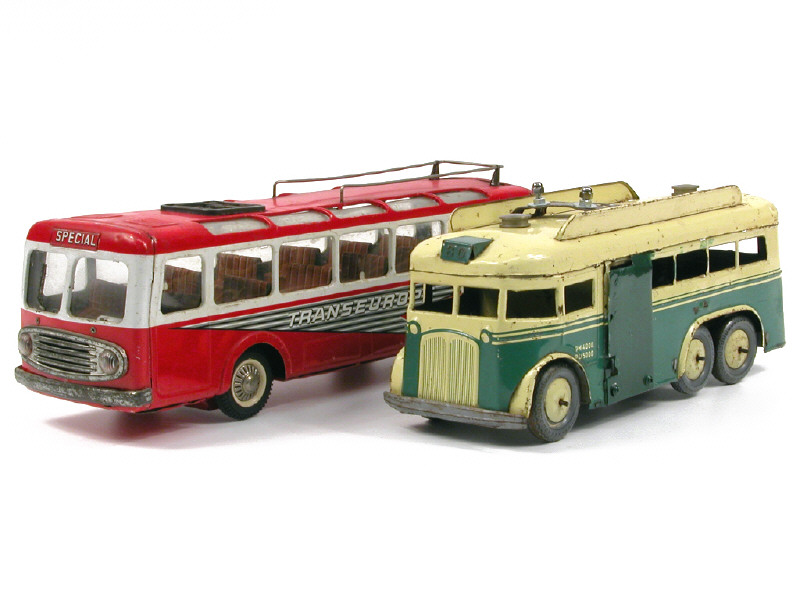 JOUSTRA (FRANCE) 442A Trolleybus mécanique en tôle lithographiée crème & vert