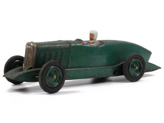 longueur 43 cm - moteur à clef (fonctionne) - traces d'oxydation - jantes & tête repeintes - 3 pneus craquelés & un non d'origine - une agrafe de calandre remplacée