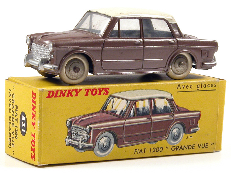 DINKY TOYS (FRANCE) 531 FIAT 1200 GRANDE VUE (version avec jantes convexes) havane métal, toit crème
