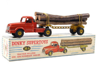 DINKY TOYS (FRANCE) 36A WILLEME Fardier (version avec jantes convexes & remorque ajourée) orange & jaune