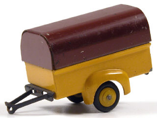 DINKY TOYS (FRANCE) 25T Remorque bâchée à 2 roues (version avec roues à pneus) jaune, jantes identiques & bâche marron