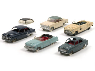 états de 'C' à 'E' - miniatures reproduisant les modèles : PEUGEOT, SIMCA, CADILLAC, FORD & PACKARD - un pare-brise cassé - un modèle avec moteur