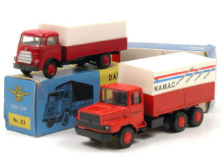 LION-CAR (PAYS-BAS) 23 DAF Plateau à ridelles bâché rouge & blanc cassé