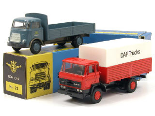 LION-CAR (PAYS-BAS) 22 DAF 1300 Plateau à ridelles basses 'BVB MAASLAND' gris bleu