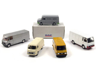 états de 'A' à 'D' - miniatures reproduisant les modèles : MERCEDES, MAGIRUS DEUTZ & DAF - on y retrouve les marques : LION CAR, CURSOR MODELL & CONRAD - un modèle avec boîte