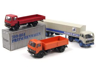 NZG (ALLEMAGNE) 186 MERCEDES Semi-remorque bâchée 'RHENUS-WTAG' gris clair & bleu