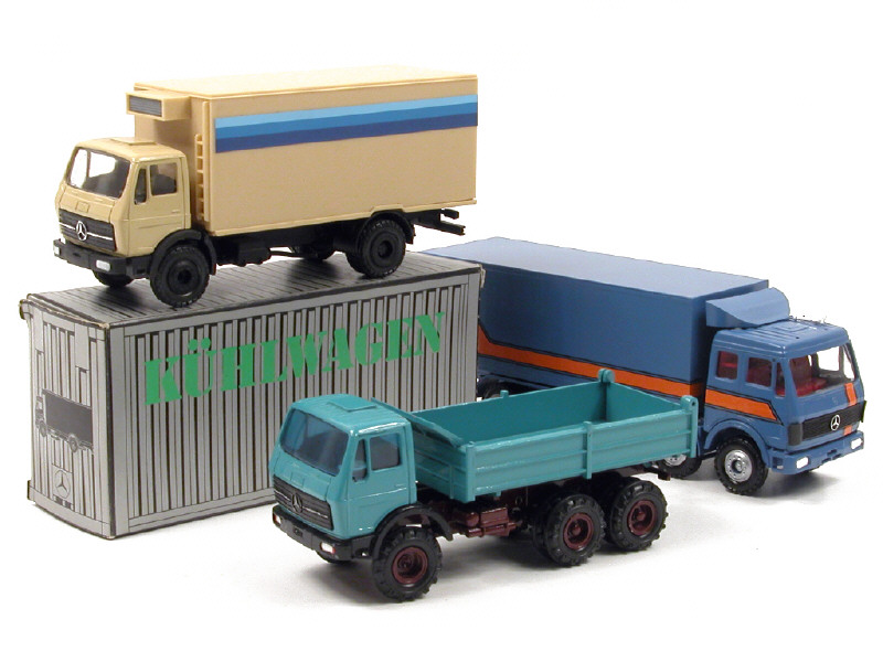 CONRAD (ALLEMAGNE) MERCEDES Plateau basculant à ridelles turquoise & marron