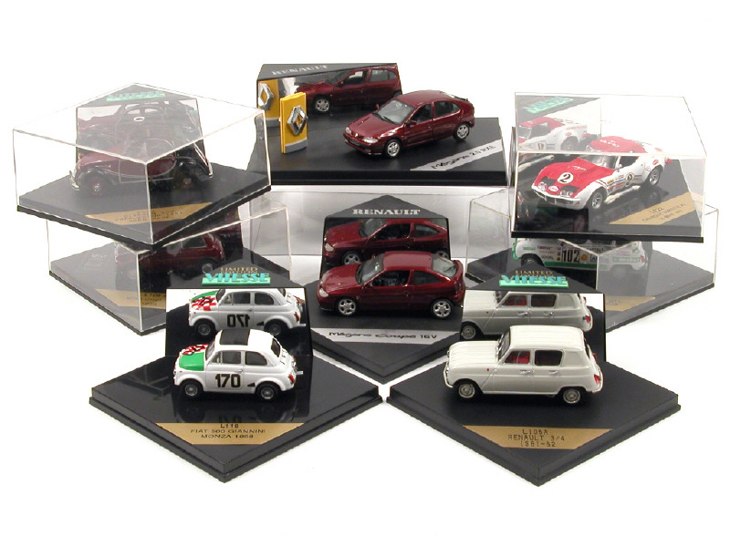 miniatures reproduisant les modèles : RENAULT, CITROËN, FIAT, CHEVROLET & MINI