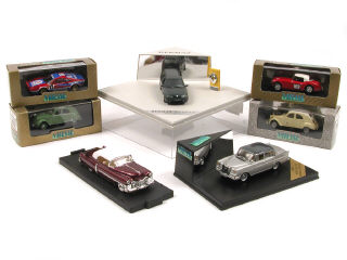 miniatures reproduisant les modèles : CADILLAC, RENAULT, CITROËN, FERRARI, AUSTIN HEALEY & MERCEDES - une petite fêlure sur le vitrage d'un modèle
