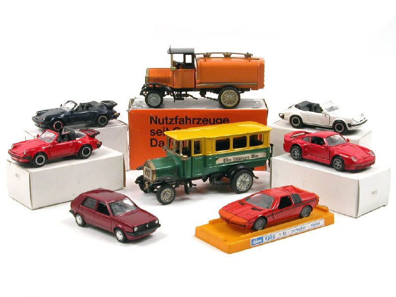 miniatures reproduisant les modèles : PORSCHE, VOLKSWAGEN, BMW & MAN - on y retrouve les marques : SCHUCO, ZISS-MODELL, SCHABAK & NZG - un modèle sans boîte en état 'B'