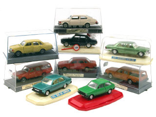 miniatures reproduisant les modèles : VOLVO, SAAB, MERCEDES, SEAT & FORD - on y retrouve les marques : INTERCARS, MIRA & JOAL - 3 modèles en état 'B' dont un avec des traces de métal fatigue