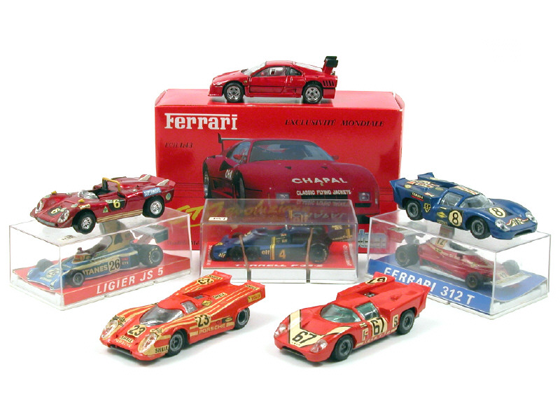 comprend : PORSCHE 917, FERRARI 312T, ALFA ROMEO 33/3, LIGIER JS5, TYRRELL P34-2, FERRARI GTO & LOLA T70 MK3B (2 exemplaires) - on y retrouve les marques : CHAMPION, MEBETOYS & JOUEF EVOLUTION - un modèle en état 'B' - une boîte en état 'c'