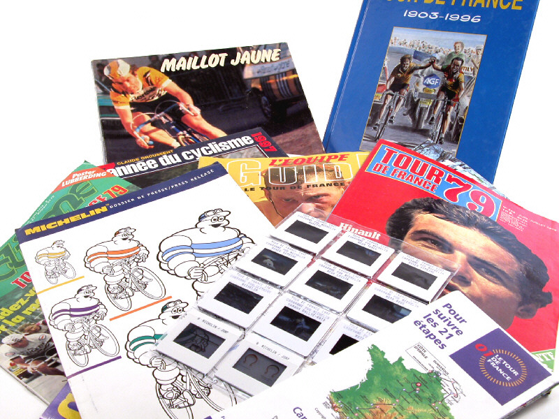 DIVERS (FRANCE) Ensemble de 6 livres, 7 magazines, 5 cartes routières, 3 cartes postales, un dossier de presse & un jeu sur le 'TOUR DE FRANCE'