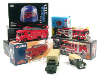 miniatures reproduisant les modèles : DENNIS, DIAMOND, BEDFORD, LAND ROVER, E-ONE & AEC